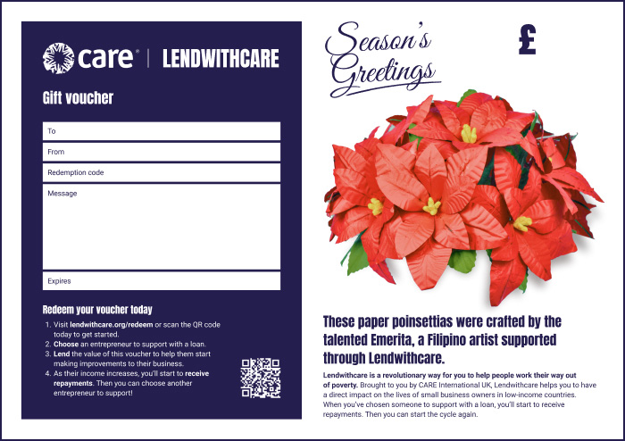 Giving a Lendwithcare voucher is truly a special thing. This gift provides your loved ones with the unique opportunity to directly support low-income entrepreneurs with a loan, allowing them to increase their income and provide for their families.