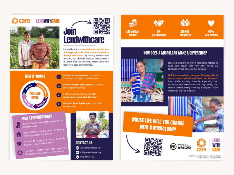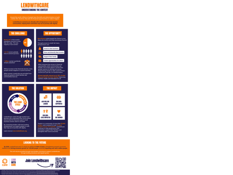 We know that sometimes something printed and handed out in person is the best way to raise awareness. Feel free to print and distribute any of the following Lendwithcare case studies, promotional flyer, and factsheet.